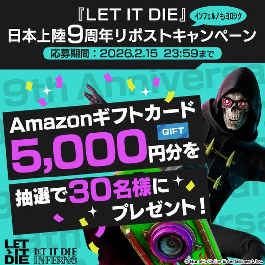 https://x.com/LETITDIE_jpn/status/2018157436608430355?s=20日本での『LET IT DIE』シリーズ販売開始から9周年を記念して、豪華景品が当たるキャンペーンを開催いたします。