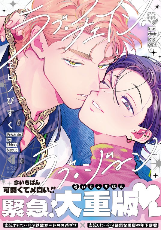 光文社のBLコミック『ラブ・チェイン・ラブ・ジーン』(ヱビノびすく)が発売以来絶好調! おかげさまで10万部(紙&電子 2026年1月末現在)を突破し、先日発表された「BLアワード2026」の目玉部門である、総合部門ノミネート作にも選ばれました!!