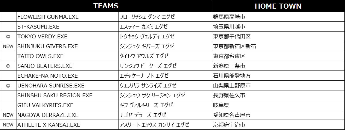 ※NEW...新規加盟チーム/◎...男女両カテゴリーで加盟するチーム