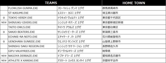 ※チームは本拠地の都道府県コード及び市区町村コード順
