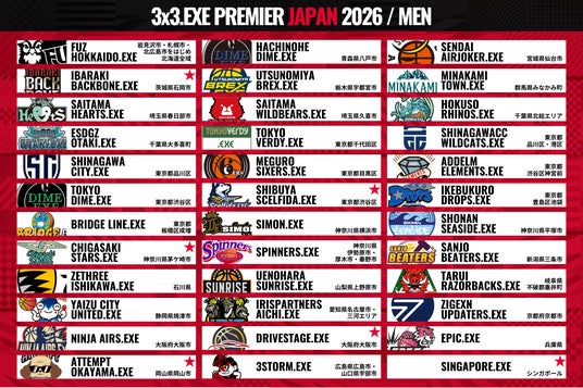 ゼビオグループのクロススポーツマーケティング株式会社(代表取締役社長:中村考昭)が主催する、3人制バスケットボールのグローバルプロリーグ『3x3.EXE PREMIER(スリー・エックス・スリー・エグゼ・プレミア)2026 JAPAN』に参戦する全チームが確定しましたので、お知らせいたします。