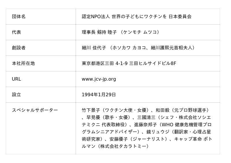 私たち「世界の子どもにワクチンを 日本委員会」(JCV)は、途上国の子ども達にワクチンを贈り、その命と未来を守る活動「子どもワクチン支援」を行う民間の国際支援団体です。感染症のワクチンは、1人分20円から高いものでも約280円ととても安価です。私たちはUNICEFや各国の保健省等と協力し、1994年の創設から1億3,966万724人の子どもたちにワクチンを届けてきました。