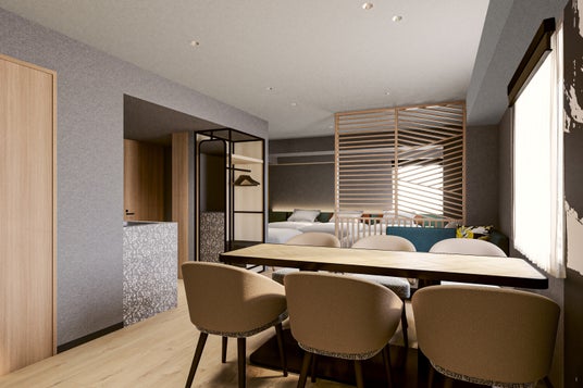 新ブランド「CROSS Suites」は、“滞在を通じて人・街・体験が交差する場”を提供し、グループ滞在や中長期滞在にも対応可能な客室構成、快適性と機能性を兼ね備えた空間づくりを特徴としています。