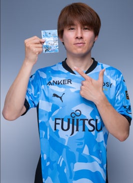 ・クラブオフィシャルグッズ「KKOOR(くくーる)」を手に紹介する川崎フロンターレ選手