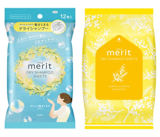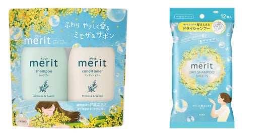 花王株式会社のへアケアブランド「merit(メリット)」は、『メリット シャンプー&コンディショナーペアセット【医薬部外品】』と『メリット ドライシャンプーシート さらっと髪まとまるタイプ』から、“ふわり やさしく香る ミモザ&サボン”を、2026年2月7日より数量限定で発売いたします。