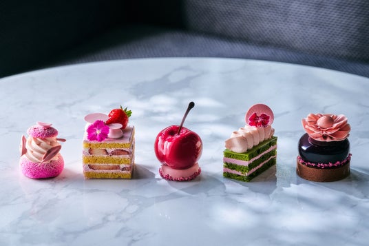 フェアモント東京では、春の手土産にもぴったりな、季節限定のケーキもご用意しております。桜と爽やかなレモンのフレーバーを合わせたムースの中に、ひと粒のグリオットチェリーと桜チェリーソースを包み込んだ「チェリーと桜のケーキ」や、抹茶をたっぷりと使用した濃厚なスポンジに、桜のバタークリームと桜のガナッシュを重ねた「抹茶と桜のオペラケーキ」のほか、クラシックなショートケーキに桜の彩りと香りを纏わせた「桜ストロベリーショートケーキ」など5種が、ロビーラウンジ「Vue Mer」のショーケースを春の色彩で満たします。