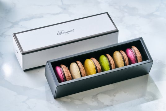 さらに、出会いの多い春の到来に先駆け、2月15日(日)より販売を開始するマカロンは、最高級産地(グラン・クリュ)の希少なシングルオリジンチョコレートが持つ個性を、それぞれの素材を使用したクリーミーなガナッシュで引き立たせた、こだわりの詰まった逸品です。爽やかな酸味のマダガスカル産チョコレートとコク深く香ばしいピスタチオが調和する「マンジャリ64%&グリーンピスタチオ」や、温かみのあるガーナ産チョコレートに繊細な塩でアクセントを添える「ニャンボ68%&フルール・ド・セル」など、フェアモント東京オリジナルの4種のフレーバーが揃います。深みのある落ち着いた色合いのマカロンが詰まったギフトボックスは、春のご挨拶の手土産にも最適です。