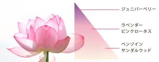 「ピンクロータス(蓮)」を中心に、サンダルウッドやラベンダーなどをブレンドした独自精油が、スキンケアの時間をリラックスタイムへと変えます。