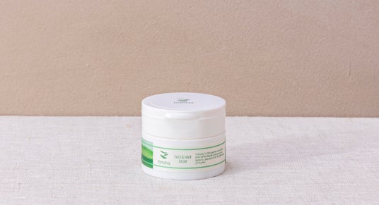 FACE & HAIR BALM(保湿バーム)自然由来指数98%(水を含まない)。茶の実油を含む10種のオイルが潤いを密封します。乾燥が気になる部分へ、マルチに使えます。