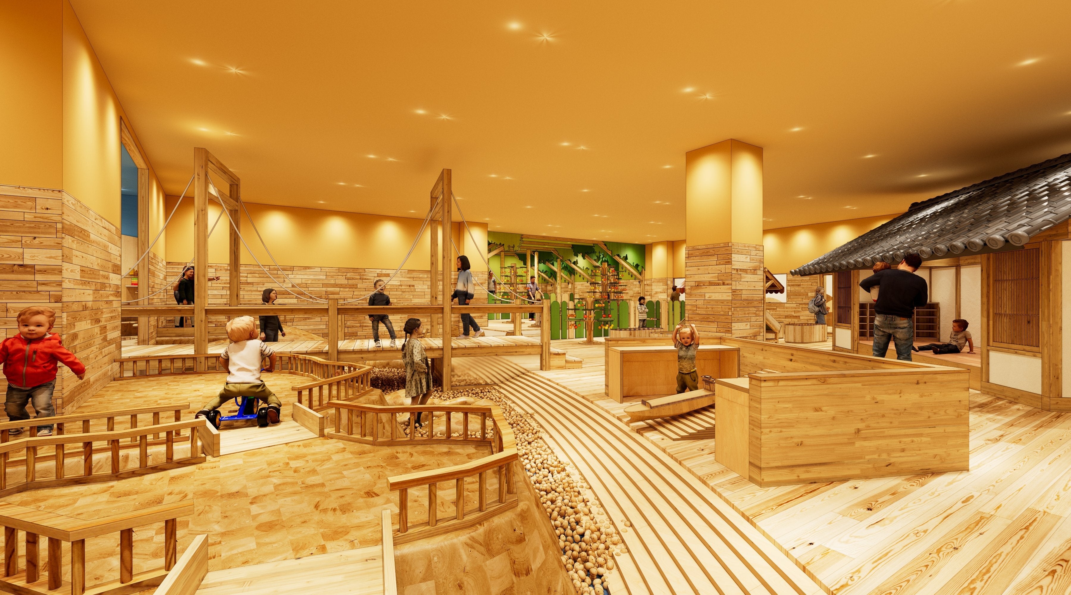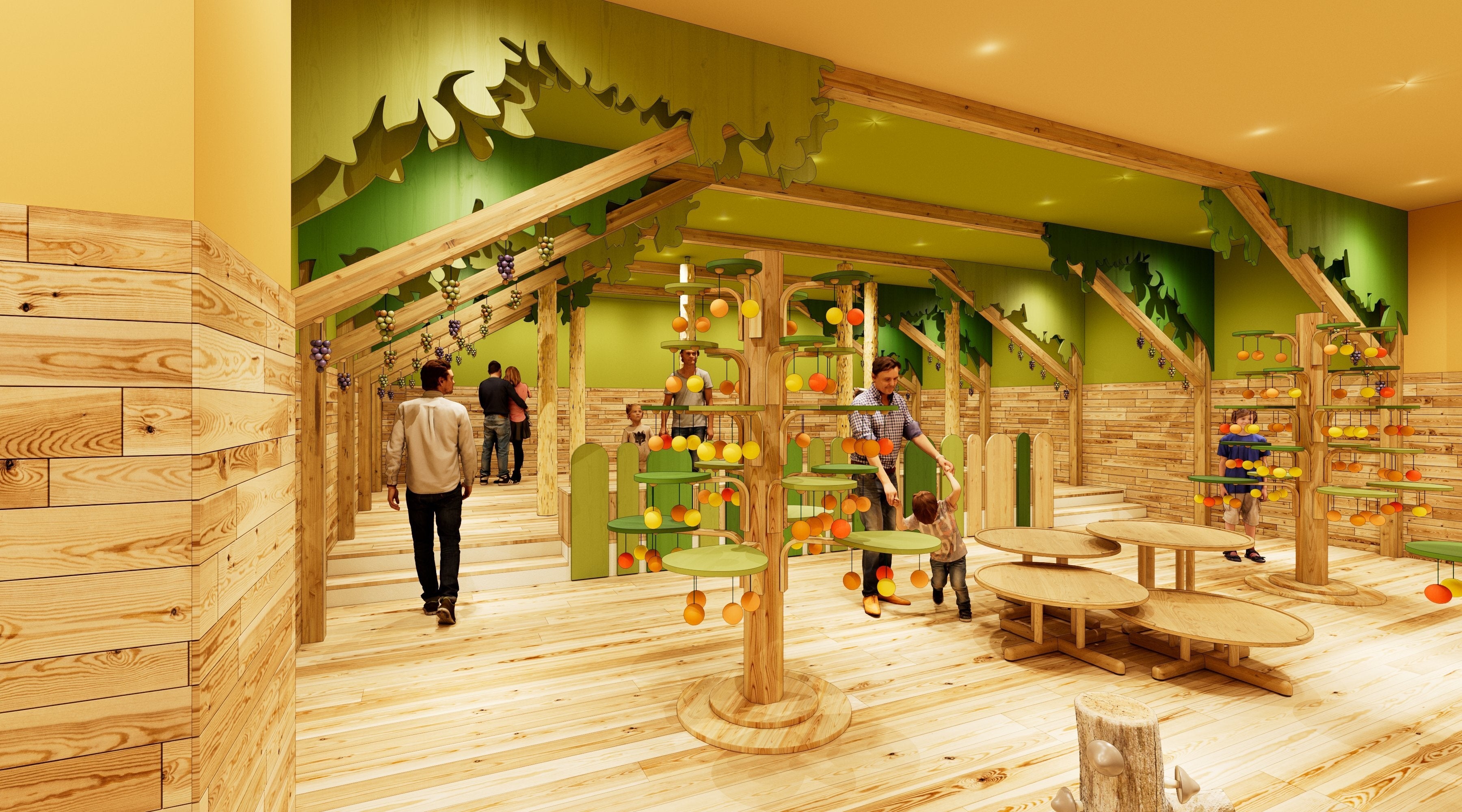 ⾚ちゃん木育ひろば0~2 歳のお子さんと保護者のみが入室できる、木のぬくもりたっぷりの木育ひろば。木の香りに包まれる優しい空間で、親子の時間をゆったりと楽しめます。