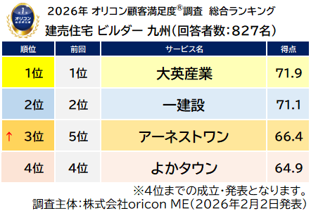 『建売住宅 ビルダー 九州』総合(オリコン顧客満足度調査)