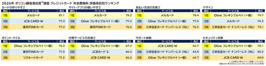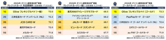 2026年 オリコン顧客満足度(R)調査 クレジットカード 3ランキング総合結果