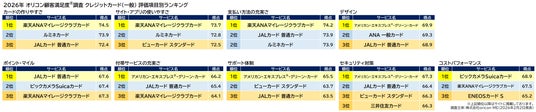 2026年 オリコン顧客満足度(R)調査 クレジットカード(一般)ランキング 評価項目結果