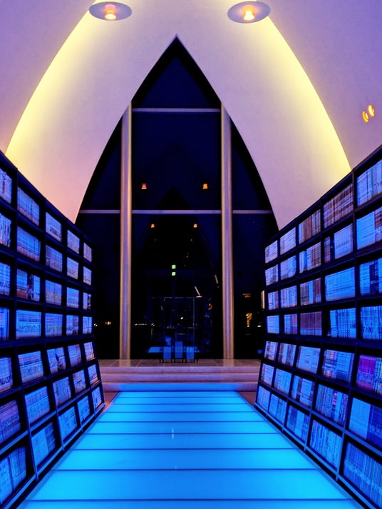 夜のライティングが幻想的なブックチャペル ※日程によりライティングは異なります