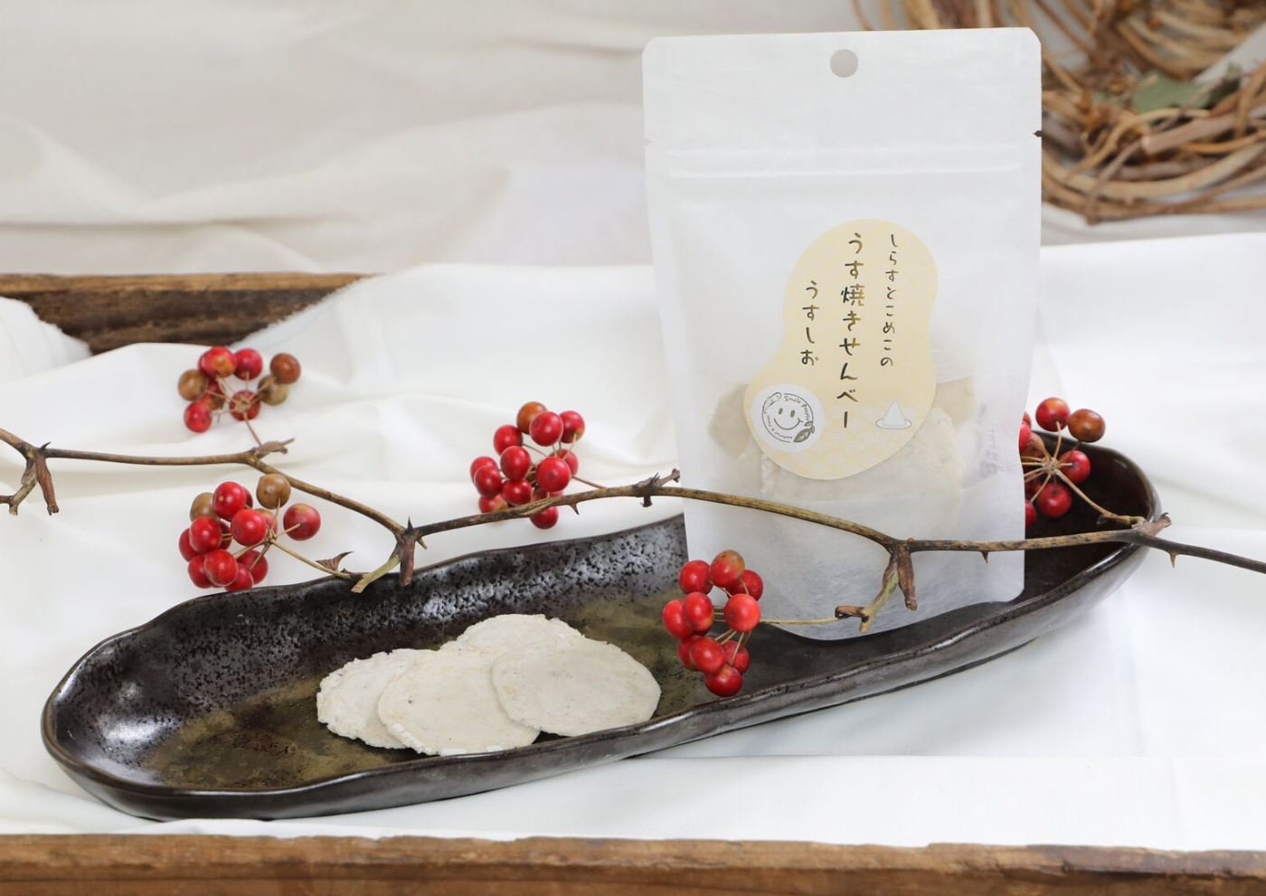 大阪産しらすと米粉を使用したうす焼きせんべい