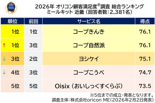 『ミールキット』総合ランキング(2026年 オリコン顧客満足度(R)調査)