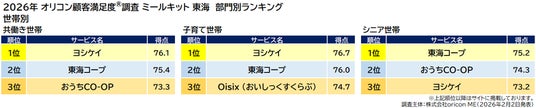 また、総合5位の【コープデリ(コープみらい)ウィークリーコープ】は世帯別「シニア世帯」で3年連続の1位、総合7位の【ヨシケイ】は評価項目別「配送サービス」で3年連続の1位を獲得しています。