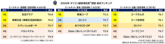 ■『首都圏』 【生活クラブ】と【東都生協(東都生活協同組合)】が同点で総合1位に