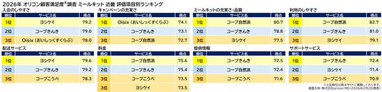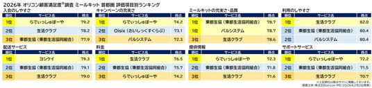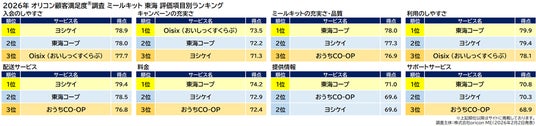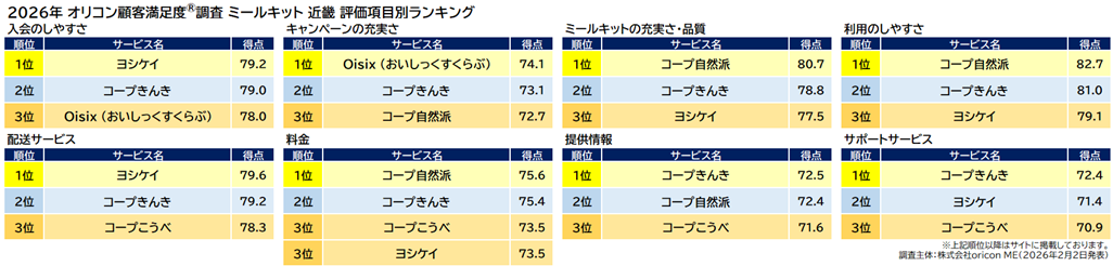 『ミールキット 首都圏』評価項目別ランキング(2026年 オリコン顧客満足度(R)調査)