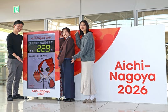 中部国際空港株式会社(所在:愛知県常滑市、代表:籠橋寛典)は、第20回アジア競技大会の公式空港として、国内外から当空港に訪れるお客様に対し、2026年9月から開催される「第20回アジア競技大会」の機運醸成を目的に、2026年2月1日(月)にアクセスプラザおよび第1ターミナル2階国際線到着ロビーにて、フォトスポットとして大会開催までのカウントダウンボードおよび表彰台を設置しました。