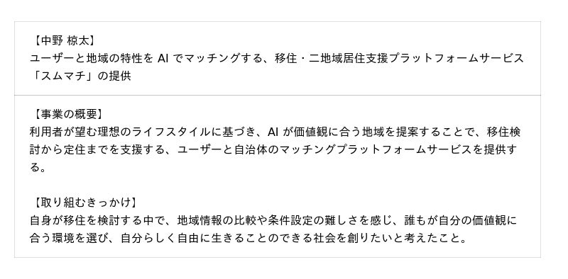 新たな価値創造に挑む起業家の成長を伴走してサポートする5ヶ月間のプログラムです。