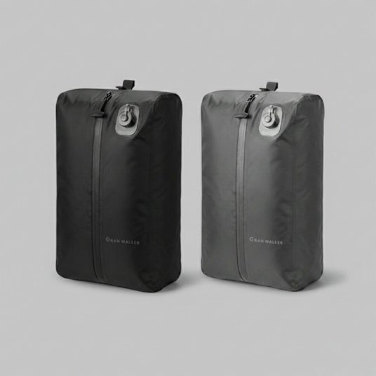 従来のビニール製圧縮袋とは一線を画す、マットな質感の高品質素材を採用。中身が透けない不透明設計で、そのまま持ち運んでもスマート。ブラック・ダークグレーの2色展開で、ビジネスシーンにも違和感なく溶け込みます。