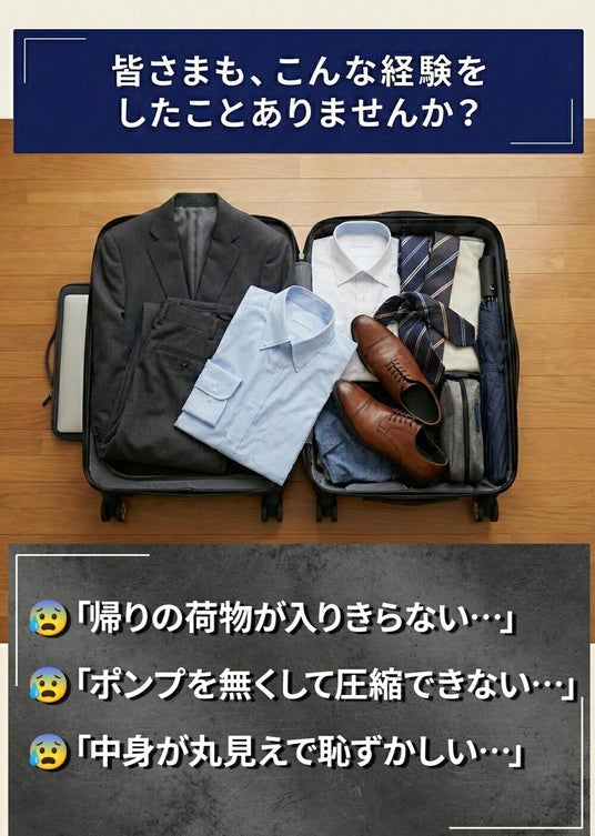 掃除機も、手動ポンプも、もう要らない。ボタンをワンプッシュするだけで、衣類がみるみる圧縮されていく--。株式会社リアドベント(代表取締役 祖父江由美子)は、電動ポンプを内蔵した次世代トラベルギア「GRAN WALKER(グランウォーカー)自動圧縮袋」を2026年2月2日より発売いたします。これまでの「圧縮袋=面倒でダサい」という常識を覆す、スマートで高性能な圧縮バッグが、旅行者・出張族の新定番になります。