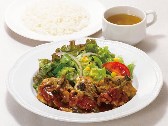 【ランチ】(火・水)チキンのポルチーニクリームランチ(ドミグラスソース) 980円(税込1,078円)火曜日と水曜日限定の日替わり洋食ランチ。香ばしくグリルしたチキンに、きのこの旨みをきかせたポルチーニクリームソースを合わせ、ロイヤルホスト自慢のドミグラスソースと一緒に仕上げました。スープ・ライス付きです。