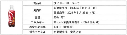 ダイドードリンコ株式会社(本社:大阪市北区、代表取締役社長:中島 孝徳)は、2026年春夏の新商品として、「ダイドー THE コーラ」を自動販売機では3月2日(月)より、量販店等では5月25日(月)より発売しますので、お知らせいたします。