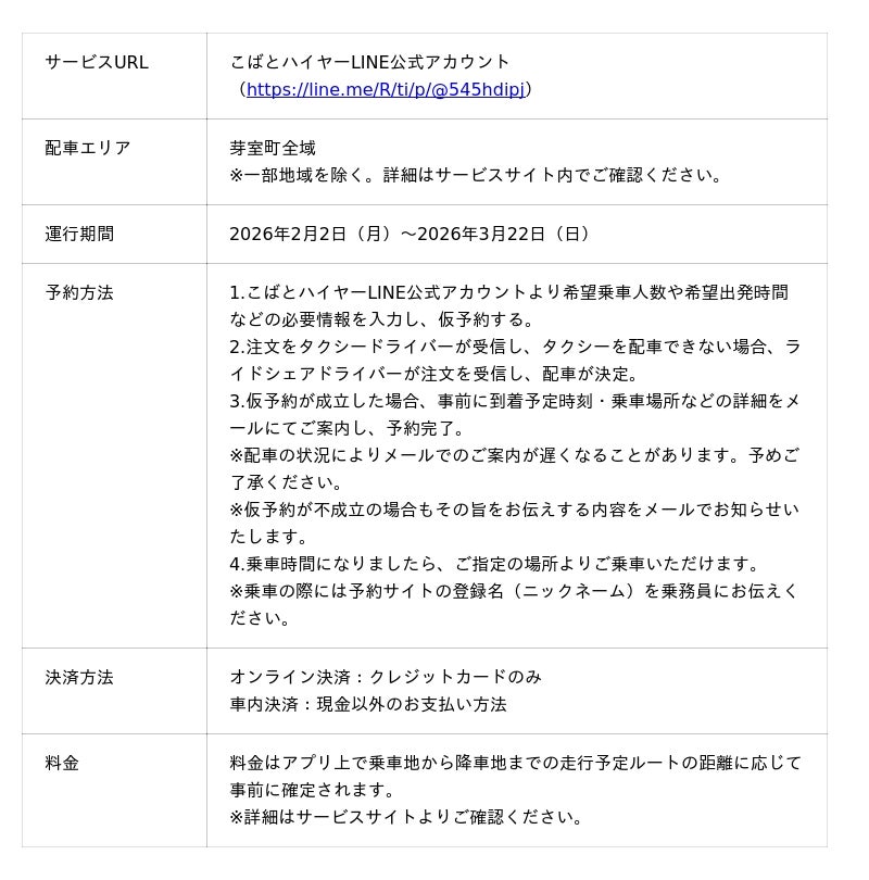 ~こばとハイヤーのLINE公式アカウントを通じて配車予約が可能に~