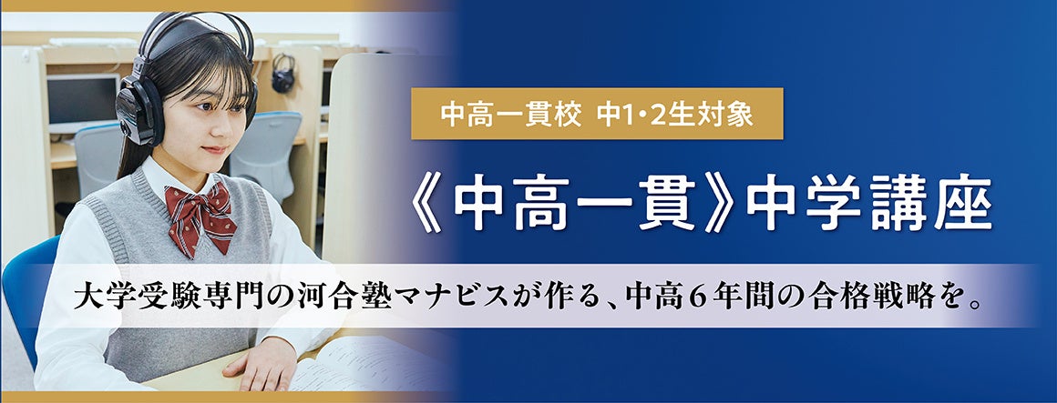河合塾マナビスは、昨年開講した、中高一貫校の中学1年生用「《中高一貫》中学講座part1」に加え、中学2年生用の「《中高一貫》中学講座part2」を2026年3月より順次提供いたします*。これにより、中学1年生から高校3年生までの6年間を通じ、難関大学合格に向けた一貫した学習が可能となりました。