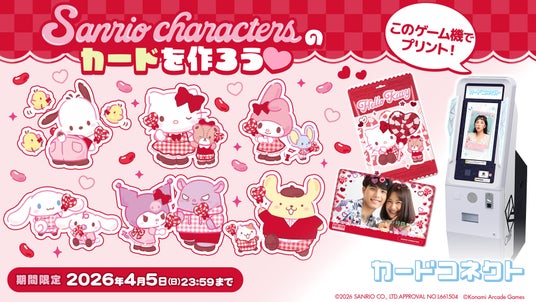 株式会社コナミアーケードゲームスは、アミューズメント施設向けカードプリントゲーム機『カードコネクト』にて、株式会社サンリオのキャラクターたちとのコラボデザインイベントを2月2日(月)から4月5日(日)まで開催することをお知らせします。