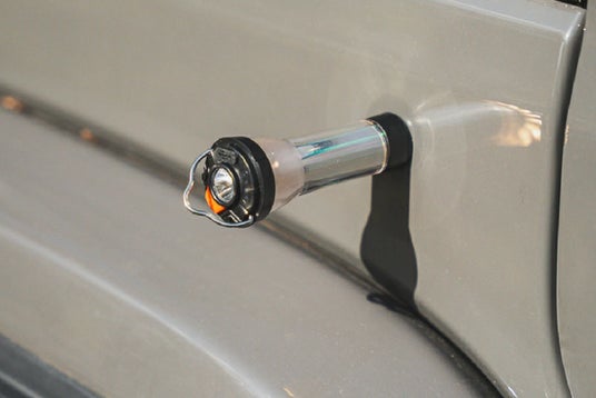 また、底面にはマグネットが内蔵されており、車や鉄板、冷蔵庫などに簡単に取り付けることができるのも便利です。
