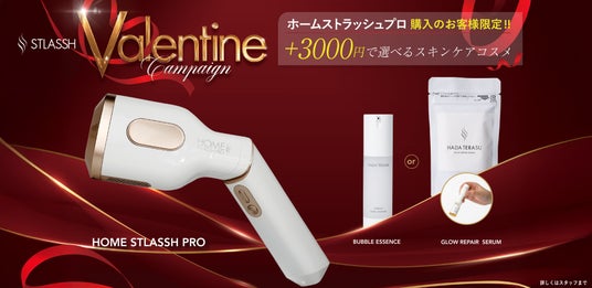 脱毛実績314万回*¹以上を誇る脱毛サロン「ストラッシュ」監修の家庭用脱毛器「 HOME STLASSH PRO (ホームストラッシュプロ)」をご購入いただいた方限定!今だけ「HADA TERASU(ハダテラス)グロウリペアセラム」と「RADIANT (ラディアント) バブルエッセンス」のいずれかを特別価格でご購入いただけます。