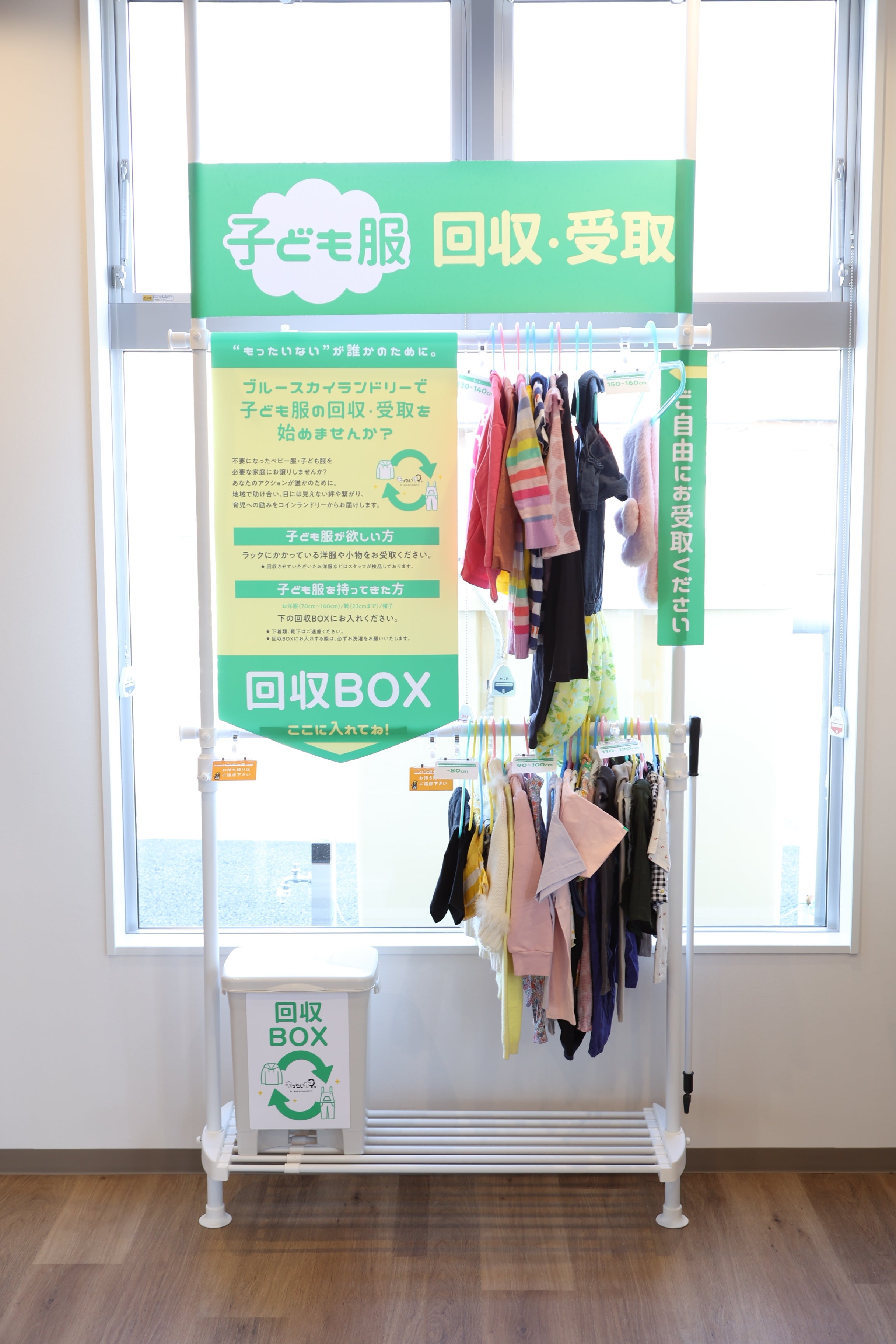 ブルースカイランドリーでは、日常の利便性に加え、地域とのつながりを大切にした取り組みを進めています。全国391店舗のうち、279店舗が災害対応型ランドリーとして、災害時に炊き出しや簡易的な電力供給が可能な設備を備えています。また、192店舗では子ども服リユース活動を実施し、不要になった子ども服を必要とする家庭へつなぐことで、子育て世帯の支援と資源循環の促進に取り組んでいます。