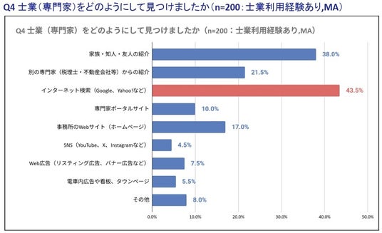 【検索行動】 専門家探しの手段は「インターネット検索(43.5%)」が最多。「紹介」を上回りデジタル経由が主流に 。