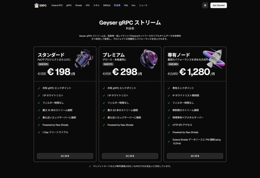 これは、汎用的なリソースを大量に並べるモデルではなく、Solana の実行結果に直結するプレミアムリソースを厳選し、その時点で最良の構成を固定して提供しているためです。