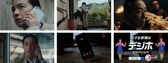 尾野真千子さん演じる勇猛果敢な刑事と、犯罪組織との緊迫感あふれる攻防戦を描き、ストーリーは予想外のデジタルトラブルへと転じていきます。最後はシリアスな世界観から一転、「スマホ修理はデジホ♪」「パソコン修理はデジホ♪」とコミカルに締めくくられます。クライムサスペンス映画を思わせる迫力ある映像と、シュールな結末の温度差にもご注目ください。■「突入」篇