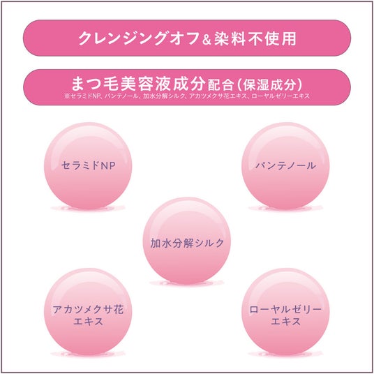 肌へのやさしさを考えた処方染料不使用でクレンジングしやすい処方。また、まつ毛美容液成分※4も配合されており、まつ毛のケアも同時に叶えます。