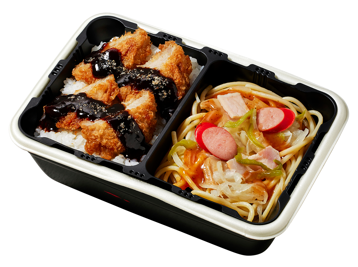 (1人前)1,680円スパイシーなあんかけスパゲティと、名物駅弁の味噌ヒレカツ重。