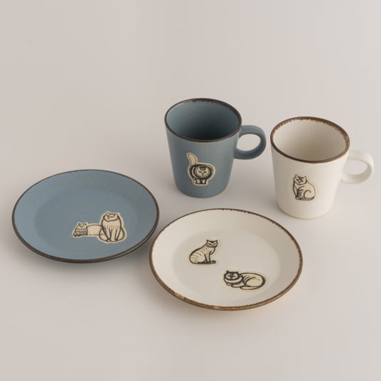 カップ&プレート(Found Cats Series・益子焼)各 ¥5,500(税込)