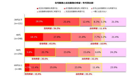 出社勤務希望「30代以下:11.6%」「60代以上:35.3%」 ~しゅふJOB総研調査~
