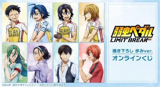 漫画・アニメのオリジナルグッズを販売する株式会社アルマビアンカ(本社:東京都中野区、代表取締役:坂井智成)は、自社オンラインくじサービス「DRAW!DRAW! -ドロー!ドロー!-」にて1月29日(木)より『弱虫ペダル LIMIT BREAK』 描き下ろし 歩みver. オンラインくじを販売いたします!