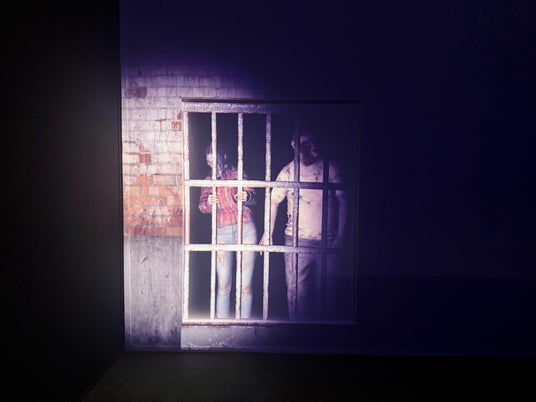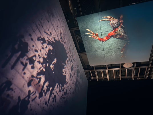 特別なセンサーが向けられた壁面のみにゾンビなどの映像が投影されます。バイオハザードの世界観を新感覚で体験できるインスタレーション展示です。