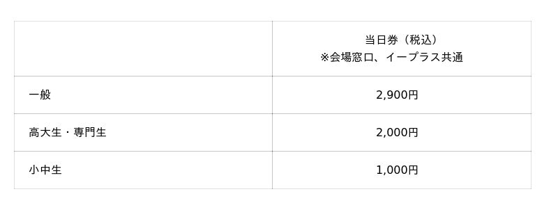 チケットは、当日窓口で直接ご購入いただけます。イープラスでもチケットを販売中です。