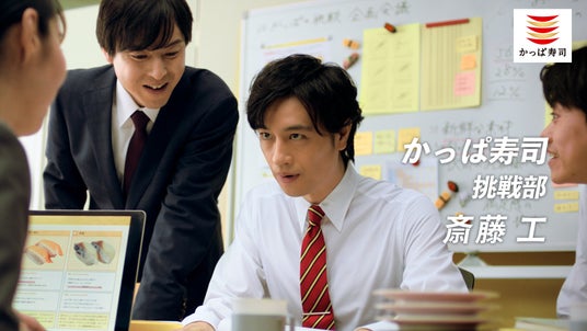 ・内容:かっぱ寿司の"挑戦部"社員と扮する俳優の斎藤工さんが、お客様の日々に寄り添い、もっと「ワクワク」をお届けするために、商品・企画案を練っていく内容となっております。「これでいきましょう!」という斎藤工さんの熱意溢れる姿とともに、おすすめネタをご紹介。声優の下野紘さんのナレーションでお届けします。