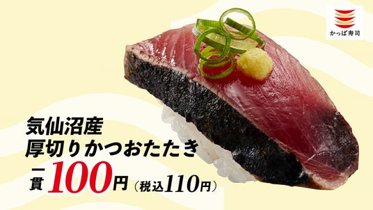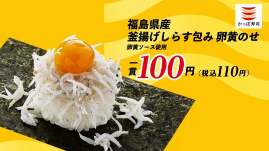 今回は、脂のたっぷり乗った『気仙沼産 厚切りかつおたたき』や、鮮度の高いふっくらとした釜揚げしらすに卵黄ソースが絡む『福島県産 釜揚げしらす包み 卵黄のせ』など、110円(税込)でご用意しました。そのほかにも、三陸産のとろいわしやめかぶ、青森県産のほたてなど、東北の贅沢ネタが勢ぞろい。豊かな恵みを堪能できる、自慢のネタをたっぷりとお召し上がりください。