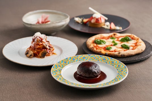 メインディッシュは、ハンバーグ、ピザ、パスタから選べます。高温の薪窯で仕上げることで、中はふっくら、外は香ばしい薪の香りでカリッと焼き上がります。デザートには、薪窯で火入れしたいちごを使ったタルトと、京都ならではの白味噌がアクセントのパンナコッタをご提供します。