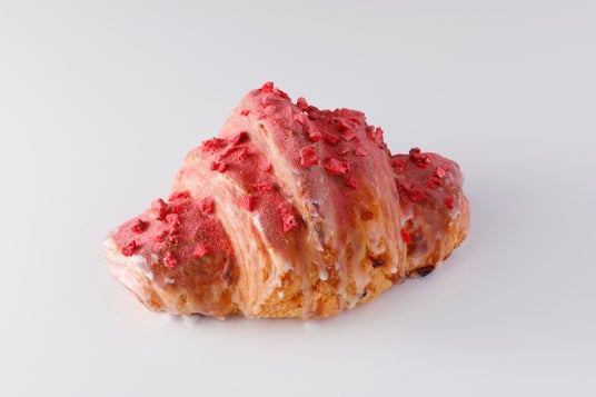 まるで生のあまおうを食べているかのような味わいを表現したいという想いから誕生した『あまおうクロワッサン』。クロワッサンの中央には、200度の焼き窯にも耐えうる溶けない特製のあまおうジュレが鎮座しています。さらに内側には、あまおうから抽出した濃厚な甘みを丁寧に塗りこみ、生地からもあまおうを感じる味わいに。仕上げは、フリーズドライしたあまおうを贅沢にトッピング。最後のひとくちまで、あまおうを堪能できる“まるでスイーツ”なクロワッサンです。