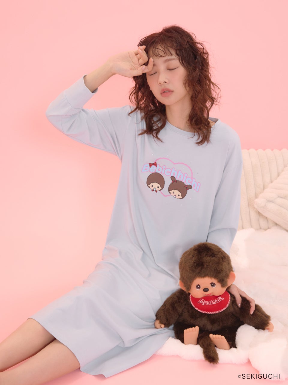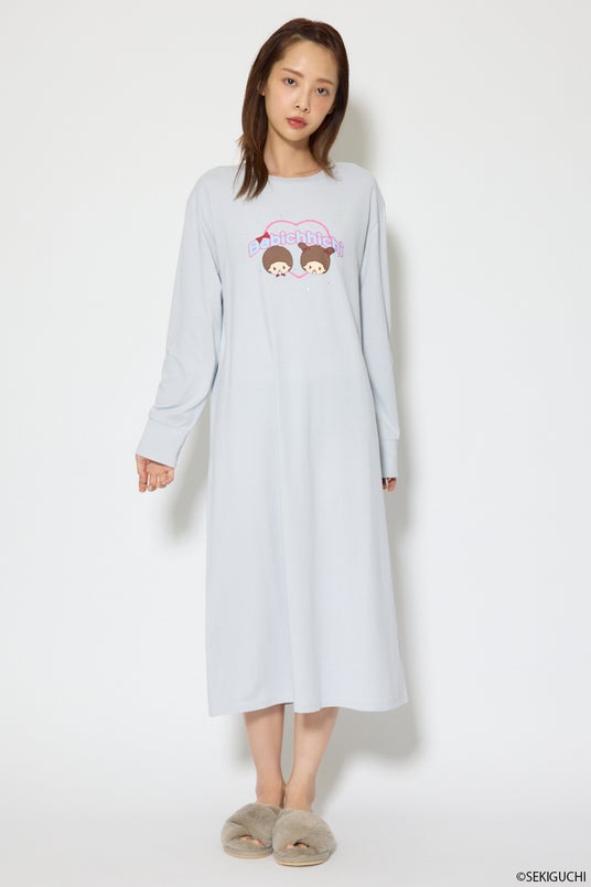 今回のコラボレーションでは、注目度の高いベビチッチを起用し、ルームウェアとしておすすめなワンピース、セットアップ、顔型ポーチの3型を展開いたします。